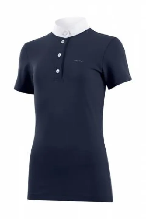 Ce polo de compétition à manches courtes pour filles se distingue par son look classique et ses caractéristiques techniques adaptées aux exigences des jeunes cavalières.