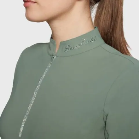 - Zip bordé de cristaux Swarovskis et logo Samshield sur le col décoré de quelques cristaux