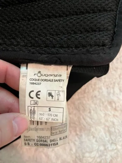 Protection dorsale équitation Marque FOUGANZA Taille adulte S – convient à une taille 160-170 – Hauteur de la coque : 44 cm