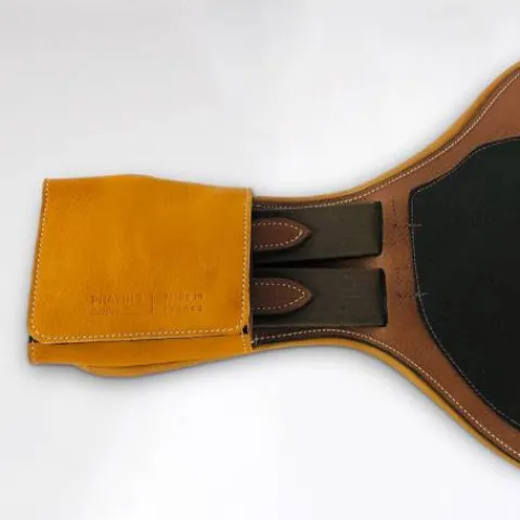 - 4 boucles à rouleaux sur élastiques protégées par un cuir souple enveloppant les boucles et se fixant à l’aide de velcro.