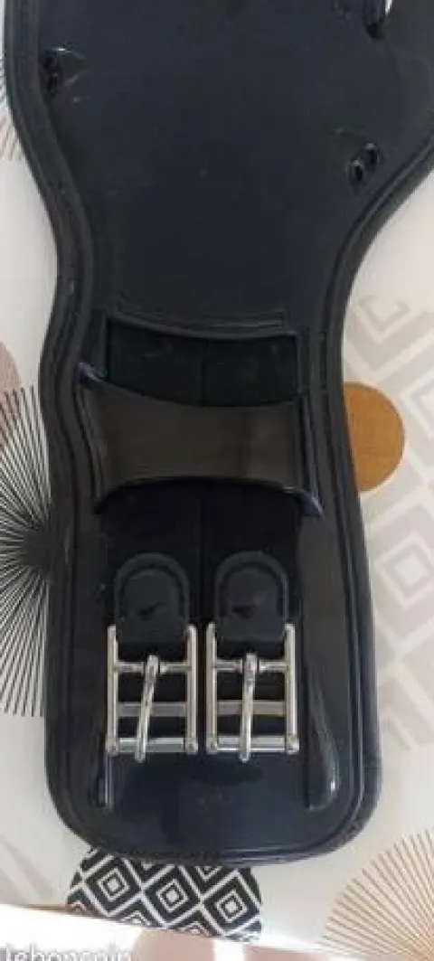 je vend une sangle de marque equick, anatomique, noir en cuir côté cheval, taille 65cm, élastique des 2 côtés, neuve juste essayer ne convient pas à ma jument.