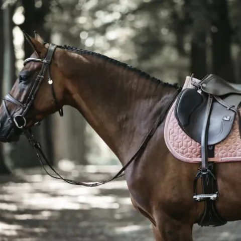 - Le tapis de selle comporte un logo en cuir subtil, tout en offrant suffisamment d’espace pour broder le tapis de selle si nécessaire.