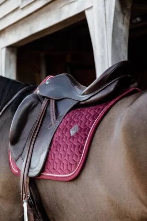 Le tapis de selle Saddle Pad Velvet très élégant avec son effet velours et son passepoil à double torsion. Ce tapis est conçu pour le dressage et offre un excellent amorti entre le dos du cheval et la selle, tout en protégeant contre les frottements. Le tapis de selle n’a pas de sangle gênante pour attacher la selle, seulement une sangle en nylon pour la sangle.