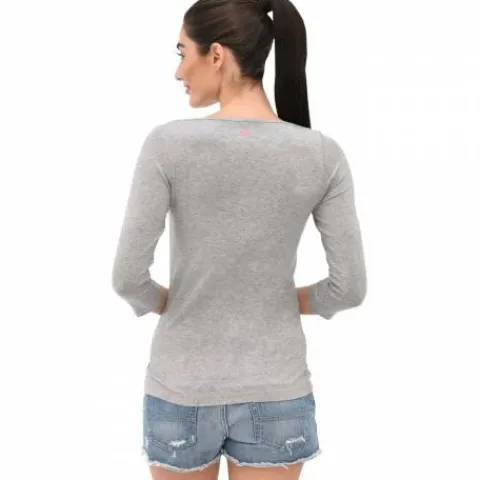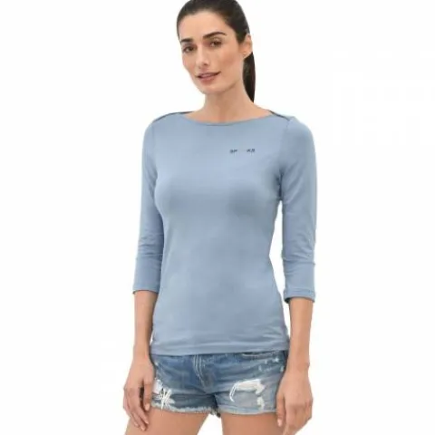 Tee shirt près du corps à manches 3/4 et encolure bateau. Le tee shirt Livie se caractérise par les coutures qui se chevauchent sur l’épaule. Le look simple et élégant du tee shirt est complété par le logo SPOOKS de haute qualité imprimé sur la poitrine gauche et le cœur sur le cou.