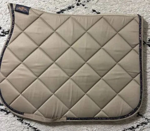 Ajoutez une touche de peps et d’élégance à votre équipement avec ce tapis de selle JU & PA, sublimé par un galon à paillettes. Ce tapis a été matelassé en Italie et fabriqué en France.