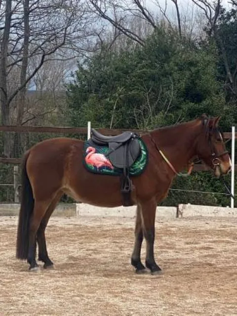 Tapis doublé d’une matière respirante, avec un bon maintien sous la selle.